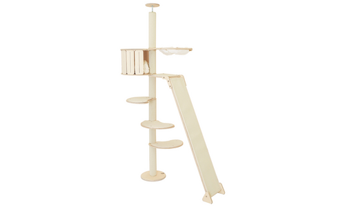 캣츠드림 고양이 놀이와 휴식의 공존 하우스 앤 슬라이드형 캣폴 세트 004 대 B형, 아이보리, 1세트